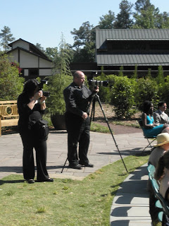 Heather and David live in San Francisco. They are both environmentalists and met at graduate school at Duke. Heather's parents live in Virginia and David's parents live in Massachusetts. So, they decided to have their wedding in North Carolina at Duke Gardens amphitheater. They contacted me by email last fall and we made all the arrangements by email and USPO. I did not meet them in person until their rehearsal. Their wedding day, May 9, 2010, was a gorgeous day, pleasant temperature, and a gentle breeze. The park was quite crowded with folks who took advantage of the nice weather so the parking was difficult for the wedding guests but we managed to start pretty much on time after all.