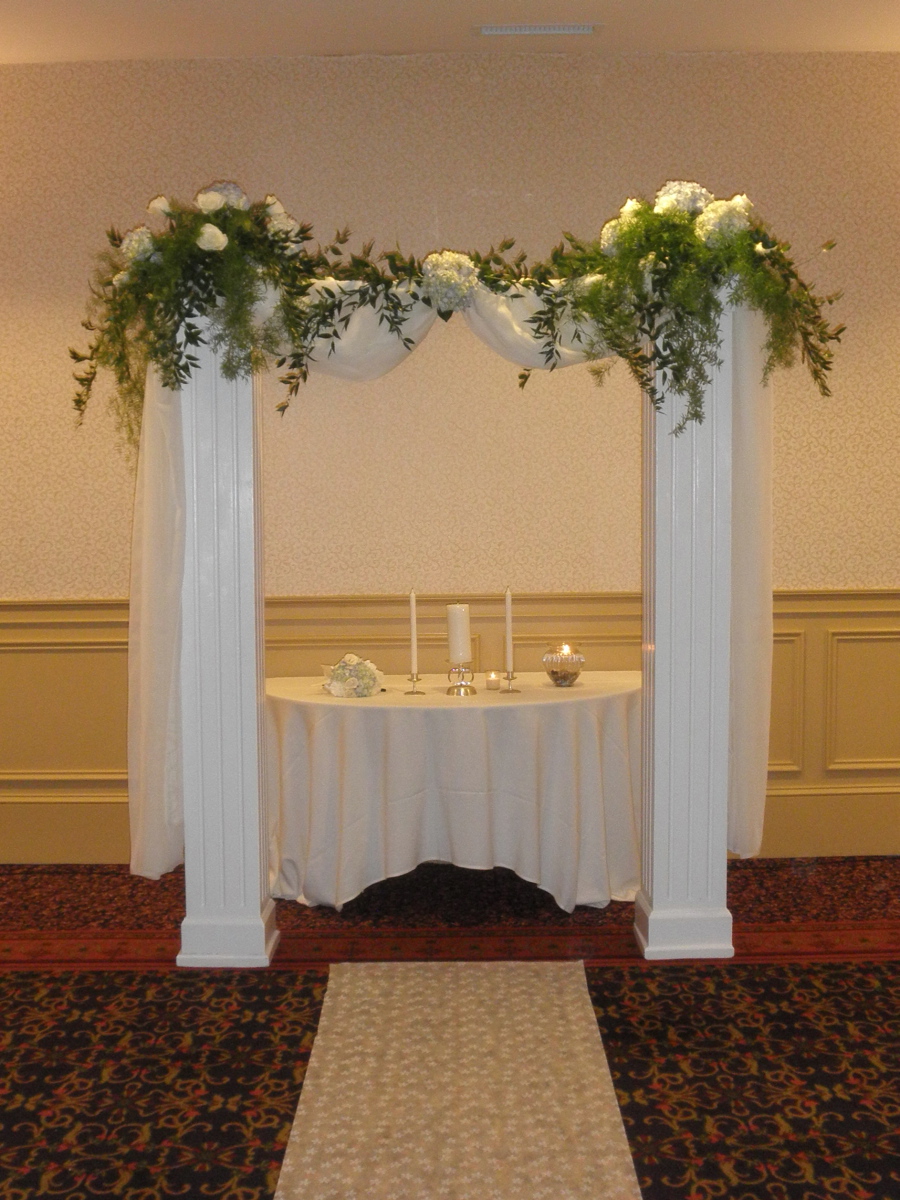 This spacious room at the Hampton Inn was set up with a beautiful arbor and the Unity Candle was on the half-table behind where I would stand. This is the first wedding I have done here. It has only recently opened.