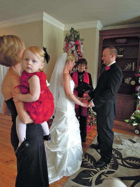 So, Judy and I worked out the logistics of booking the wedding and then I contacted Jennifer and Mark for details about their wedding ceremony. They wanted to remember those not able to be with us, thank Judy for her love and support, and include their baby daughter, Leila, in the ceremony. I sent them a proposed ceremony and they took it from there, making it just what they wanted and that is what is so important!